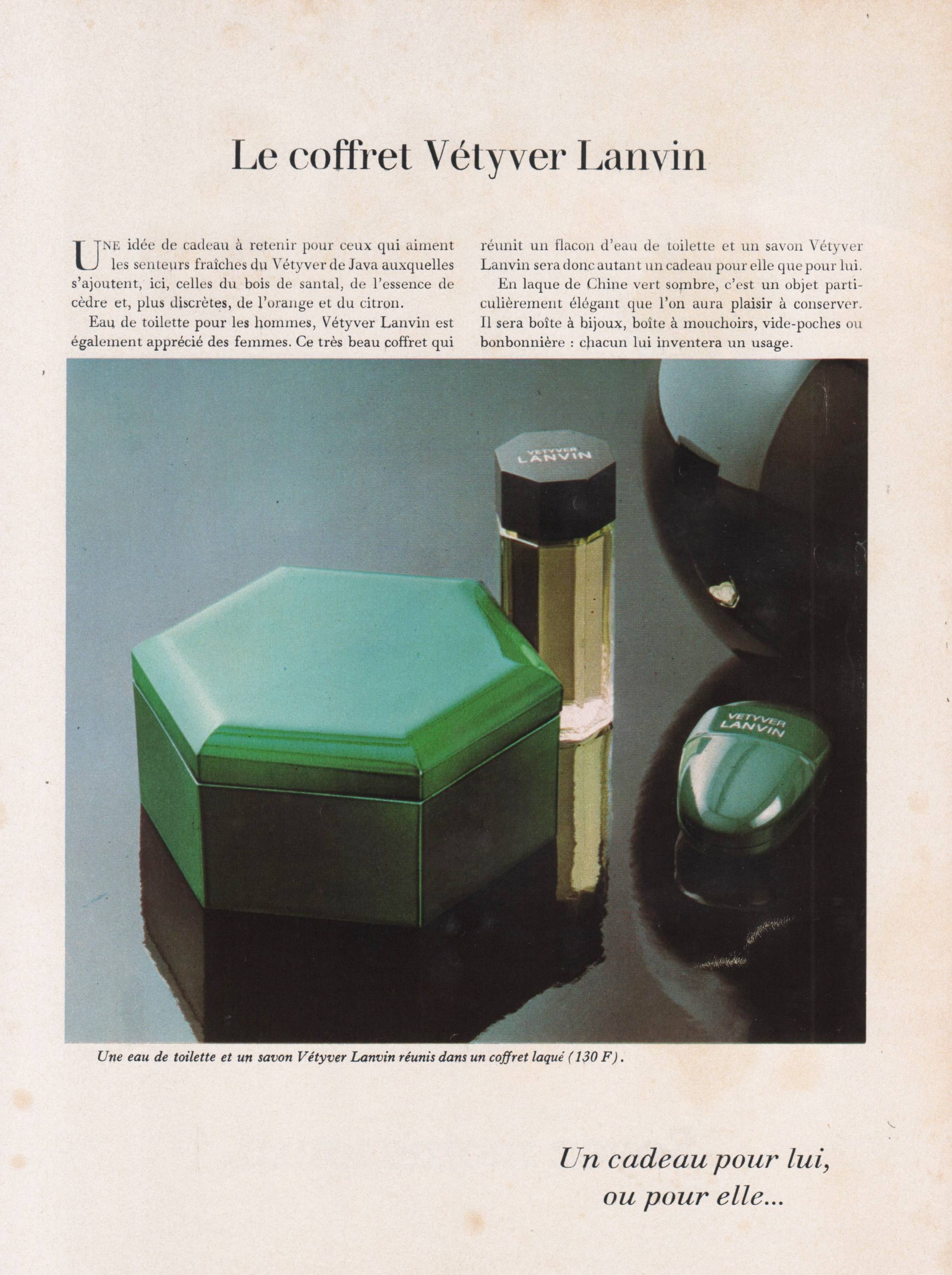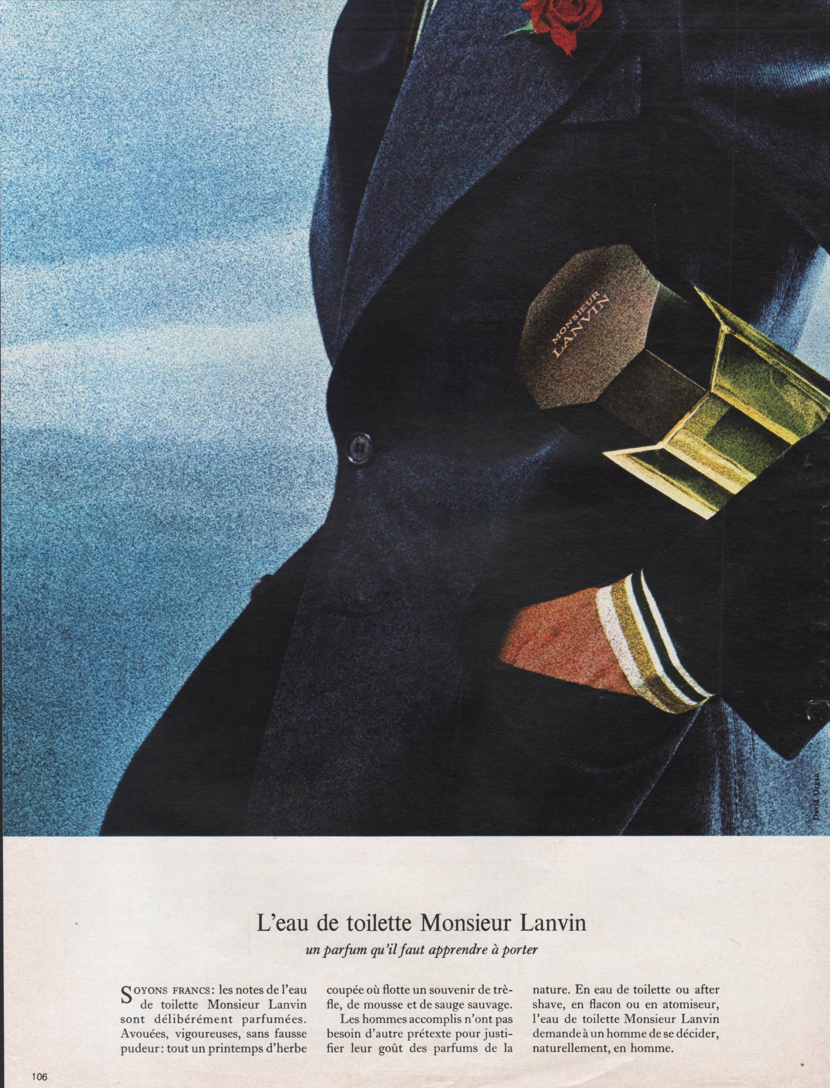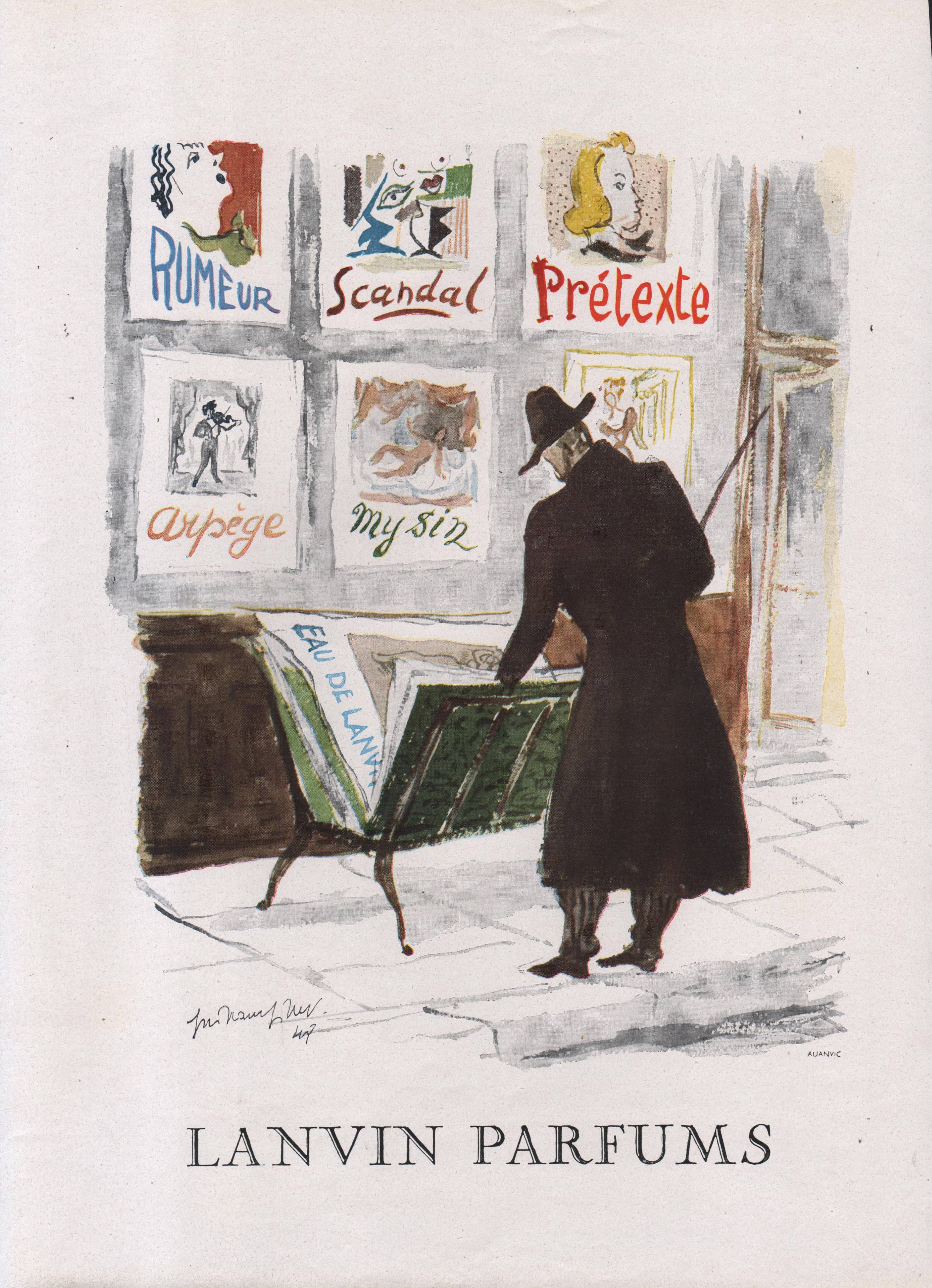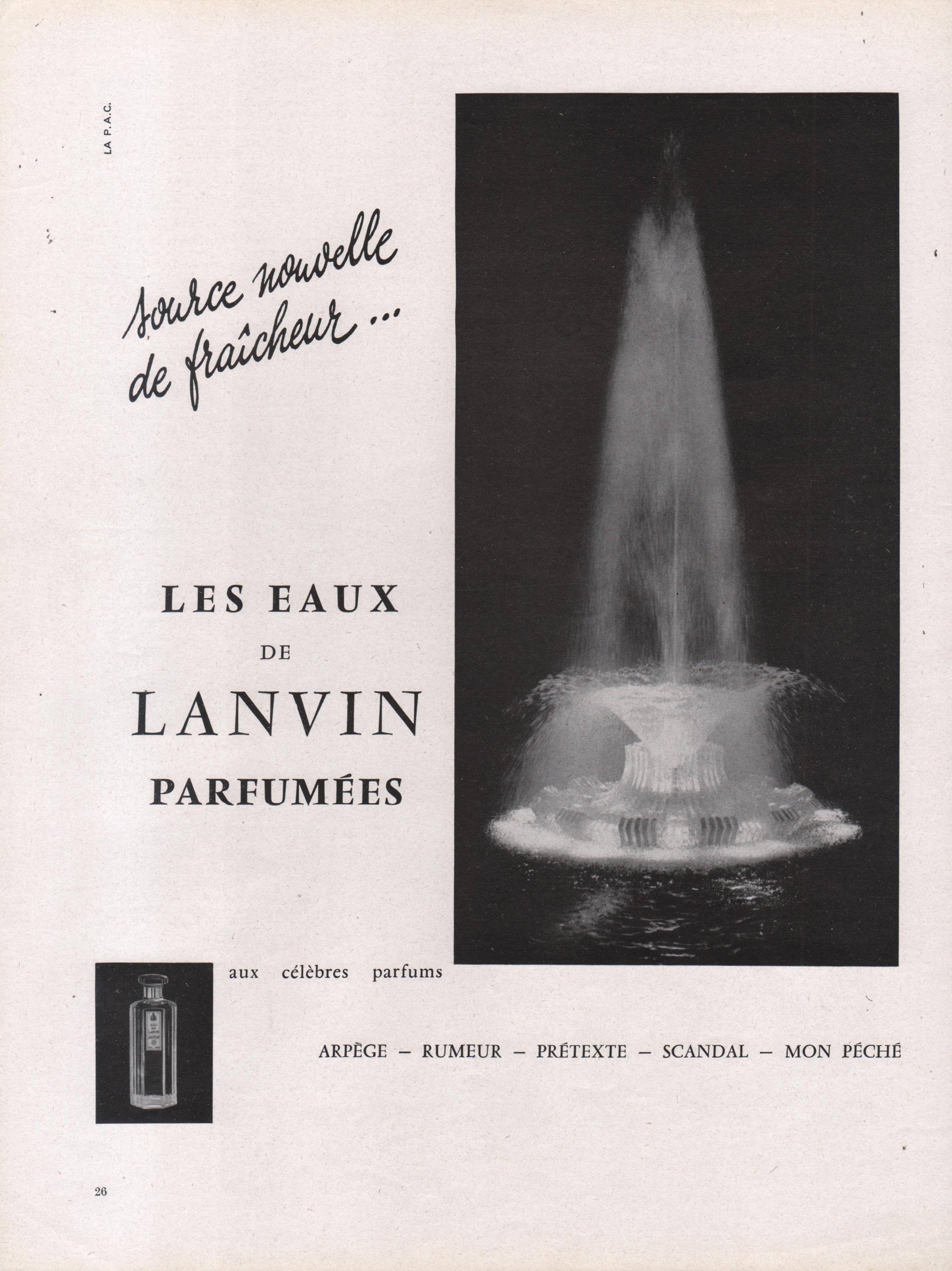 Le premier parfum de Lanvin fut élaboré par le nez André Fraysse. Il portait alors sobrement le nom de l'enseigne. Puis, il fut suivi par l'un des plus grands jus du siècle dernier, Arpège, créé en 1927 à l'occasion des 30 ans de Marguerite, fille chérie de Jeanne Lanvin. Son nom fut quant à lui inspiré par l'amour de la créatrice pour la musique. Il s'ensuivit alors tout un florilège de jus prestigieux à l'instar de Scandal, Rumeur ou Prétexte, jusqu'à la mort de Jeanne Lanvin, en 1946, alors qu'elle était âgée de 79 ans. Marguerite reprit ensuite la direction de la maison jusqu'à sa mort en 1958. Il s'en suivit de nombreuses créations olfactives telles que celle de Crescendo en 1964, Monsieur Lanvin, en 1966, Vetyver Lanvin en 1971, Cardomone en 1983, Lanvin Homme en 1987 ou Oxygène en 2000. C'est alors qu'arriva le talentueux Albert Elbaz à la tête de la direction artistique de Lanvin. Celui-ci intégra l'entreprise en octobre 2001, alors que Lanvin avait été rachetée par le groupe L'Oréal. Son talent contribua à renouveler considérablement l'image de l'enseigne. Qui plus est, il n’omit pas non plus de rendre hommage à la créatrice de la marque, Jeanne Lanvin, dans un parfum éponyme créé en 2008.