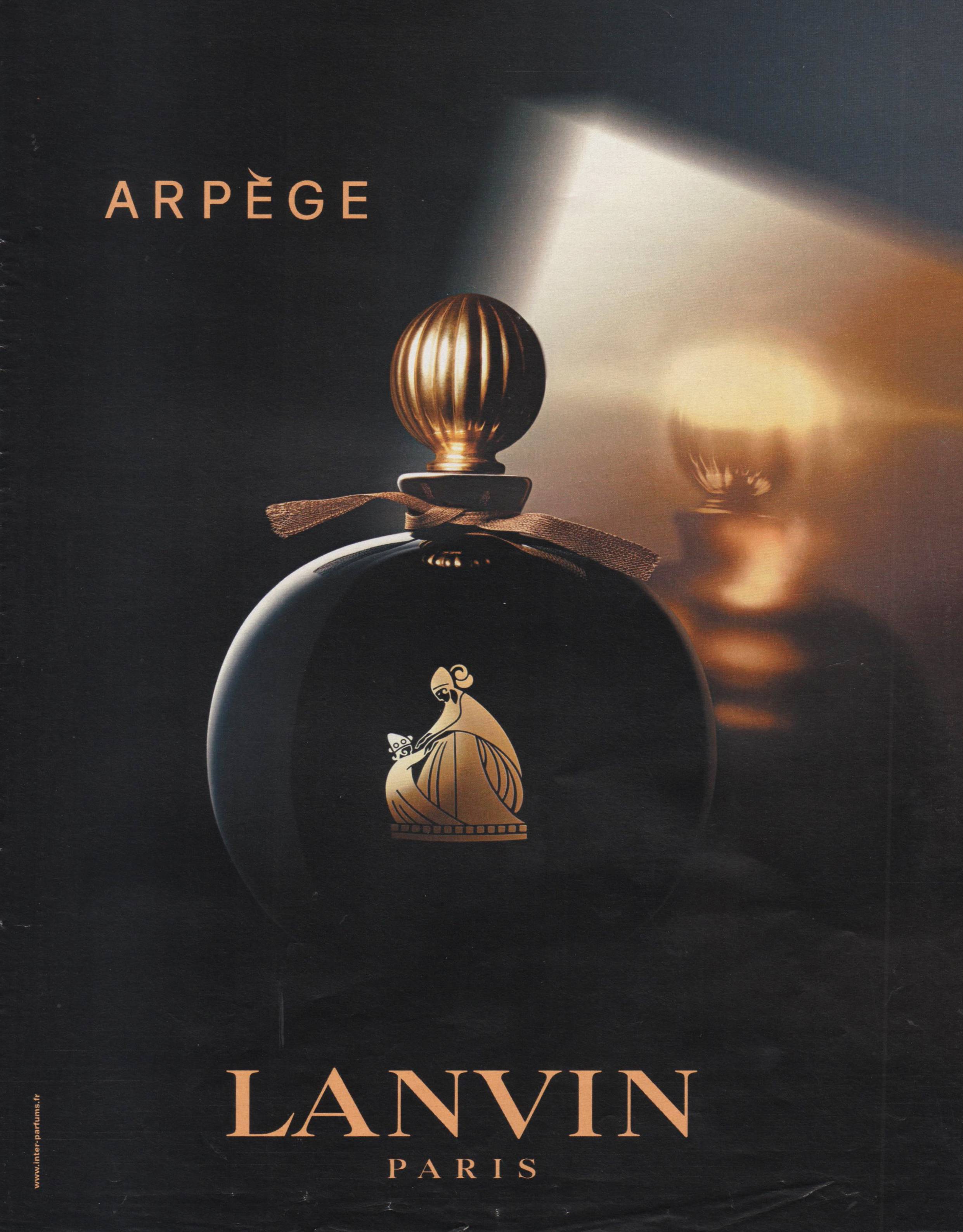 Arpège est composé de plus de 60 essences différentes, et les ingrédients ont tous été choisis avec une extrême qualité. Afin d’offrir ce somptueux cadeau à sa fille, Jeanne Lanvin s’entoura de deux parfumeurs, André Fraysse et Paul Vacher. Ils décidèrent de s’inspirer du parfum «?My Sin?» en lui apportant beaucoup plus de chaleur. «?Arpège?» a fait de sa note principale, le jasmin, accompagné par la plus féminine des fleurs, la rose. «?Arpège?» débute par des notes aldéhydées associées à la fraicheur de la bergamote et du néroli. Le cœur ultra féminin est composé d’un merveilleux bouquet avec la présence de la rose de Bulgarie, du jasmin, du ylang-ylang, de muguet et de la violette. Celles-ci sont alors réchauffées par un fond délicatement sensuel grâce au bois de santal, au vétiver, à la vanille et à la tubéreuse. Le flacon d’exception est signé Armand Albert Rateau, décorateur de grand renon. Le flacon en forme de pomme, symbolise les rondeurs de la femme. Sur le devant de la boule noire, une gravure dorée réalisée par le grand artiste, Paul Iribe. Cette gravure, devenue par la suite le blason de la maison, met en scène Jeanne penchée sur sa fille Marguerite.